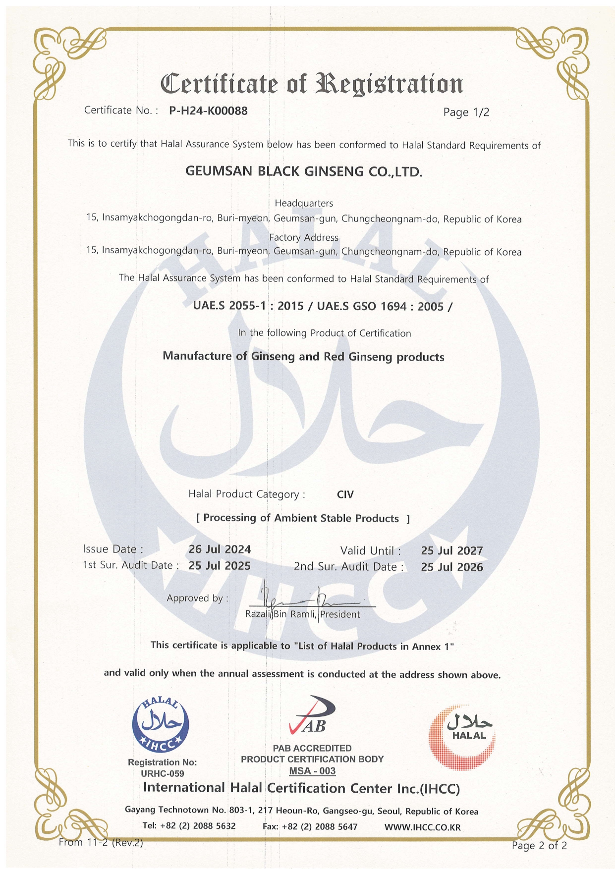 [ GEUMHEUK ] black ginseng extract Certificate