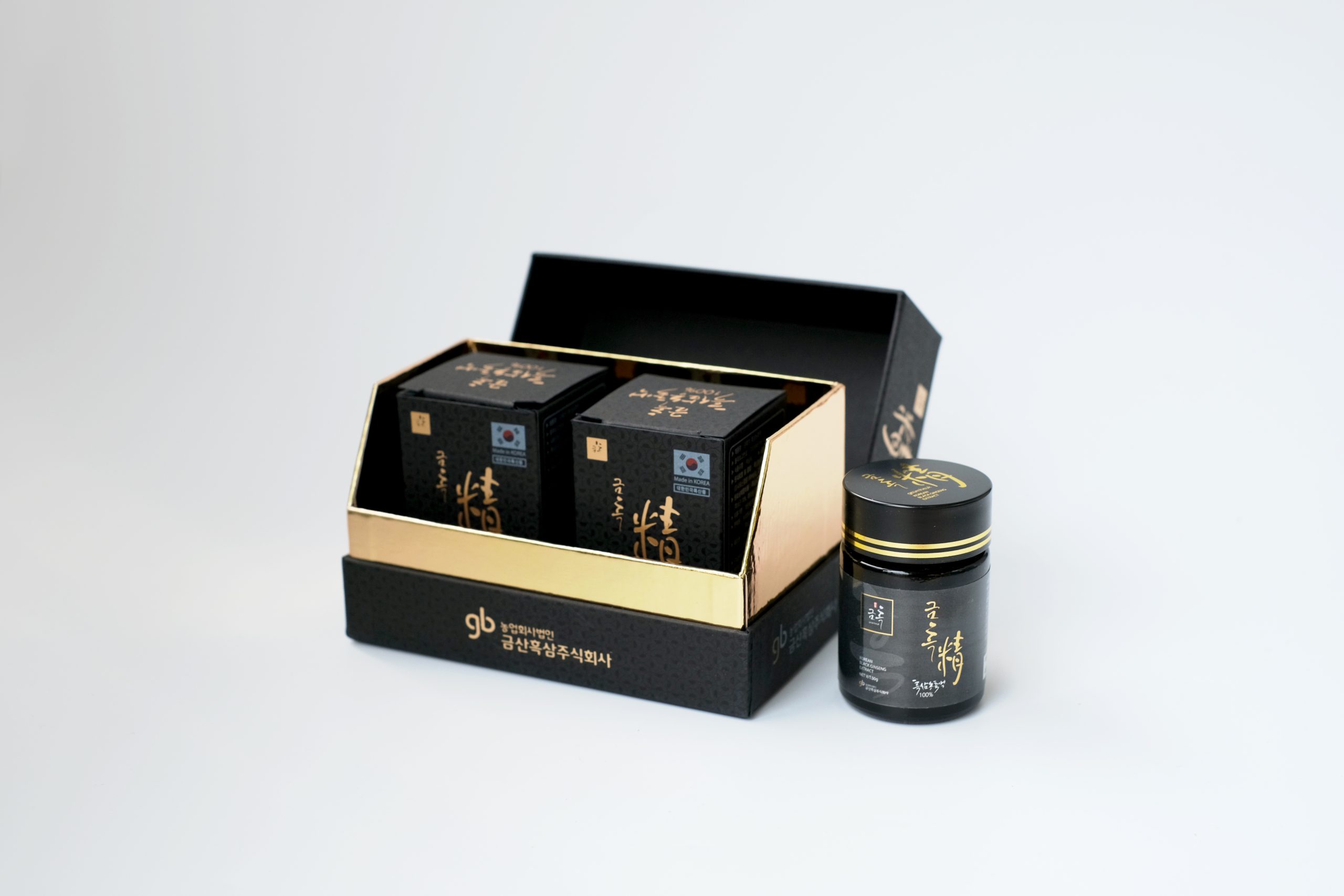 ✔ Black Ginseng : Made of ‘Goo Jeung Goo Po’ which means ginseng goes through the process of steaming & drying nine times. While being steamed and dried repeatedly, The red color of the ginseng has gradually become black, to form the black ginseng. During the process of steaming and drying, ginsenosides contents (active ingredients) increases as ginseng turn to black.